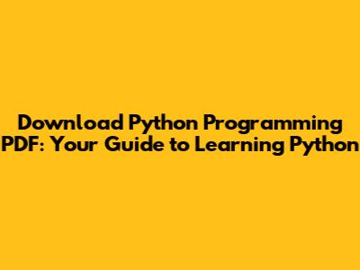 Download Python Programming PDF: Your Guide To Learning Python