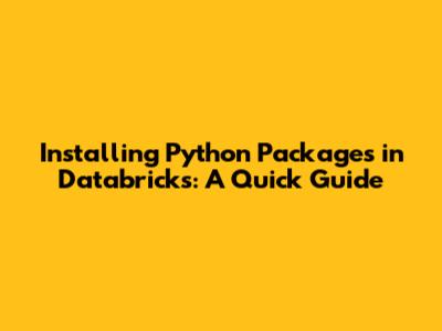 By following these best practices, you’ll be well-equipped to manage Python packages in Databricks effectively and ensure that your notebooks and jobs have all the necessary tools.
