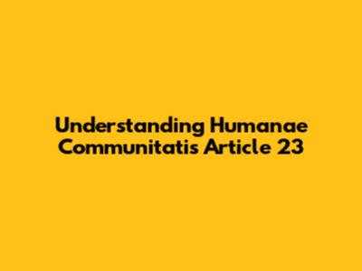 Understanding Humanae Communitatis Article 23